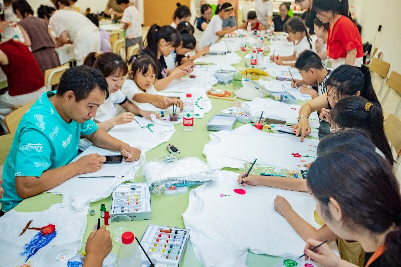 創(chuàng)作過程中,主持人穿梭其間,被一幅幅充滿愛的畫面所感染。完成后,每個家庭都自豪地舉起這件獨一無二的親子裝,留下意義非凡的大合影