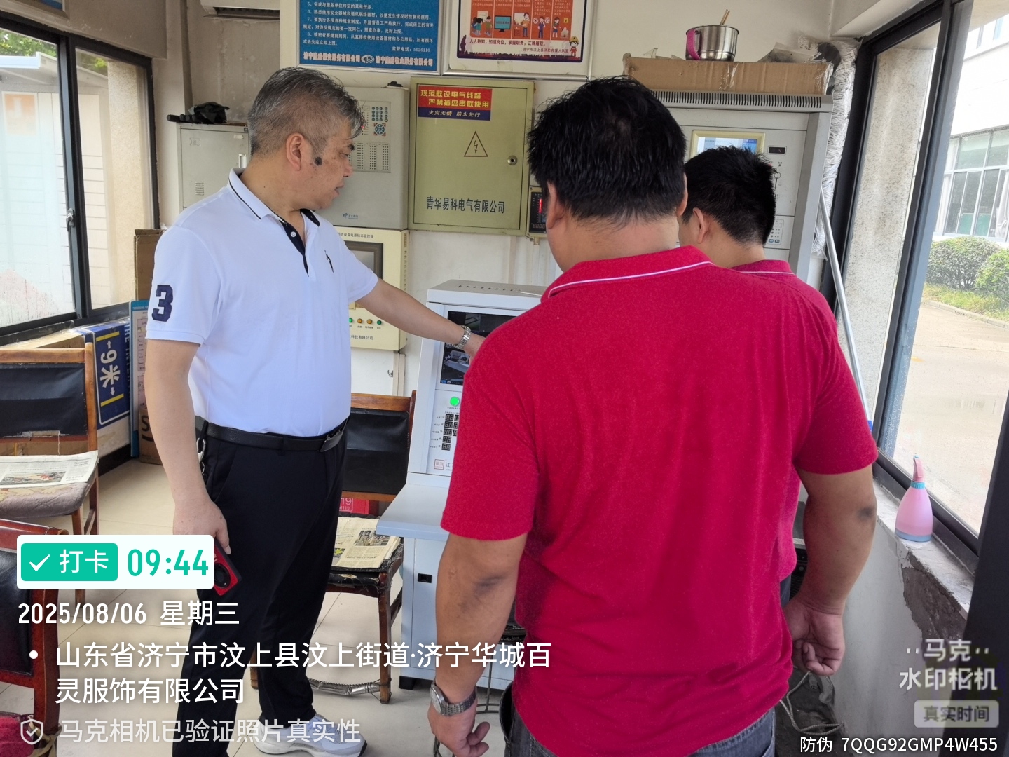 當(dāng)前位置:首頁 > 華城動態(tài)夏季高溫天是服裝廠安全事故的高發(fā)期,8月6日,華城百靈安全負(fù)責(zé)人組織了一場涵蓋消防安全、用電安全及車間環(huán)境精益化管理的綜合檢查。這次檢查由生產(chǎn)、行政、后勤等多部門聯(lián)手參與,目的就是全面排查安全隱患、補(bǔ)上管理漏洞,為工廠安全平穩(wěn)生產(chǎn)筑牢防線。