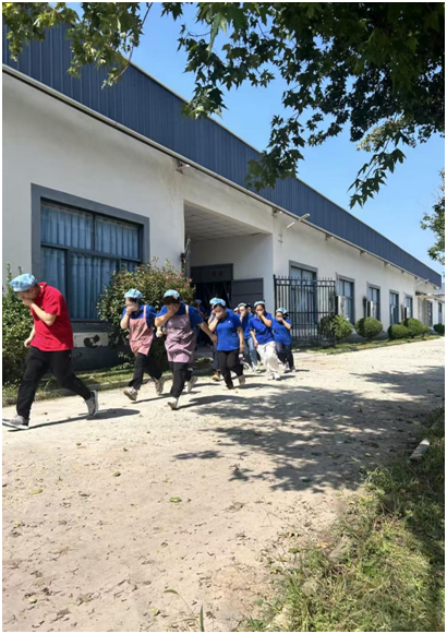 警鈴響起,所有人手捂口鼻,彎腰,迅速到達(dá)緊急疏散集合點(diǎn)。各班組長(zhǎng)清點(diǎn)人員,無落單人員。