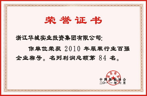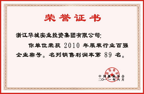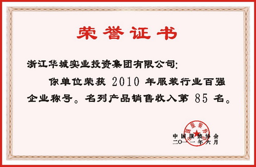 華城集團(tuán)作為平湖服裝行業(yè)的骨干企業(yè),不僅排列于平湖服裝行業(yè)十強之首,而且在全國服裝行業(yè)百強企業(yè)排序中,浙江華城實業(yè)投資集團(tuán)有限公司連續(xù)榜上有名,榮獲2010年全國服裝行業(yè)百強企業(yè)榮譽稱號,名列利潤總額第84名;產(chǎn)品銷售收入第85名;銷售利潤第89名共三個指標(biāo)的榮譽稱號,這是集團(tuán)公司自2005年以來連續(xù)六年獲此殊榮,成為嘉興地區(qū)唯一能連續(xù)榮獲全國服裝行業(yè)百強企業(yè),顯示了華城集團(tuán)努力拼搏的成功與輝煌。華城能連續(xù)跨入中國服裝百強企業(yè)行列,創(chuàng)下企業(yè)發(fā)展史上前所未有的佳績,榮譽實為來之不易。這是全體華城員工在董事長的正確領(lǐng)導(dǎo)下,同心同德、奮力拼搏、努力奉獻(xiàn)共同取得的成果。華城人始終堅信服裝企業(yè)生命力的長短來于理念,效益的高低在于管理。我們?nèi)A城從小到大、從弱到強,能如此充滿生機與活力,再一次證明了先進(jìn)的企業(yè)文化是企業(yè)生存和發(fā)展的內(nèi)在動力。文化凝聚人心,文化是動力之源,文化是企業(yè)提升核心競爭力的靈魂。企業(yè)形象靠企業(yè)文化來塑造,企業(yè)聲譽靠企業(yè)文化來傳播,企業(yè)素質(zhì)靠企業(yè)文化來提高,企業(yè)精神靠企業(yè)文化來培育,企業(yè)品牌靠企業(yè)文化來宣傳。華城企業(yè)文化的形成與發(fā)展,標(biāo)志著企業(yè)已由企業(yè)經(jīng)營正走向經(jīng)營企業(yè)的進(jìn)程。