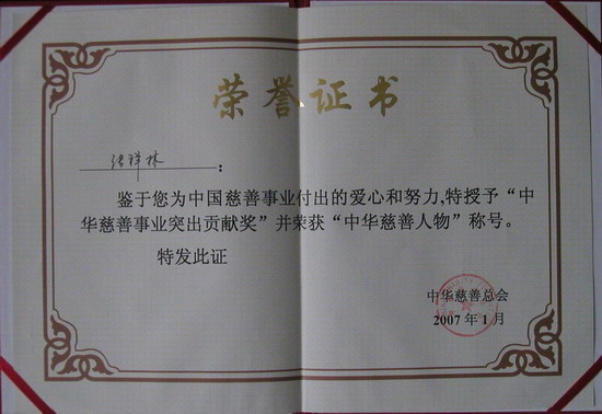 公司董事長張祥林先生被授予“中華慈善事業(yè)突出貢獻(xiàn)獎”并榮獲“中華慈善人物”稱號。