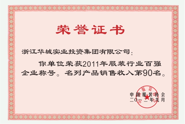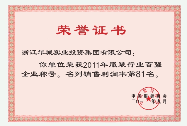 華城集團(tuán)作為平湖服裝行業(yè)的骨干企業(yè),不僅排列于平湖服裝行業(yè)十強之列,而且在今年九月發(fā)布的全國服裝行業(yè)百強企業(yè)排序中,浙江華城實業(yè)投資集團(tuán)有限公司連續(xù)榜上有名,再次榮獲2011年全國服裝行業(yè)百強企業(yè)榮譽稱號,名列產(chǎn)品銷售收入第90名;利潤總額第90名;銷售利潤率第81名,共三項殊榮,成為嘉興地區(qū)唯一能連續(xù)榮獲全國服裝行業(yè)百強的企業(yè),再次顯示了華城集團(tuán)努力拼搏的成功與輝煌,值得為此而驕傲。華城能連續(xù)多年保持中國服裝百強企業(yè),創(chuàng)下企業(yè)發(fā)展史上前所未有的佳績,榮譽實為來之不易,尤其是在目前全球經(jīng)濟形勢依然嚴(yán)峻,市場需求大幅萎縮,不穩(wěn)定因素不斷增多的不利環(huán)境下。這是全體華城員工在董事長的正確領(lǐng)導(dǎo)下,同心同德、奮力拼搏、努力奉獻(xiàn)共同取得的成果。華城人始終堅信服裝企業(yè)生命力的長短來于理念,效益的高低在于管理。我們?nèi)A城從小到大、從弱到強能如此充滿生機與活力,再一次證明了先進(jìn)的企業(yè)文化是企業(yè)生存和發(fā)展的內(nèi)在動力。文化凝聚人心,文化是動力之源,文化是企業(yè)提升核心競爭力的靈魂。企業(yè)形象靠企業(yè)文化來塑造,企業(yè)聲譽靠企業(yè)文化來傳播,企業(yè)素質(zhì)靠企業(yè)文化來提高,企業(yè)精神靠企業(yè)文化來培育,企業(yè)品牌靠企業(yè)文化來宣傳。華城企業(yè)文化的形成與發(fā)展,標(biāo)志著企業(yè)已由企業(yè)經(jīng)營正走向經(jīng)營企業(yè)的進(jìn)程。