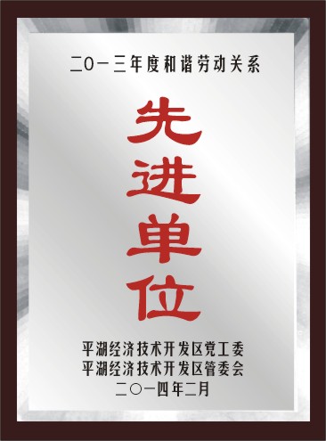 平湖經濟技術開發(fā)區(qū)和諧勞動關系先進單位:
