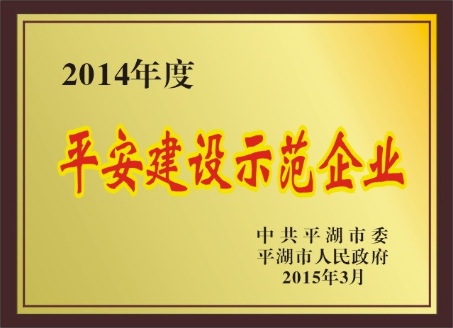 我公司被平湖市人民政府授予“2014年度平安建設(shè)示范企業(yè)”光榮稱號(hào)