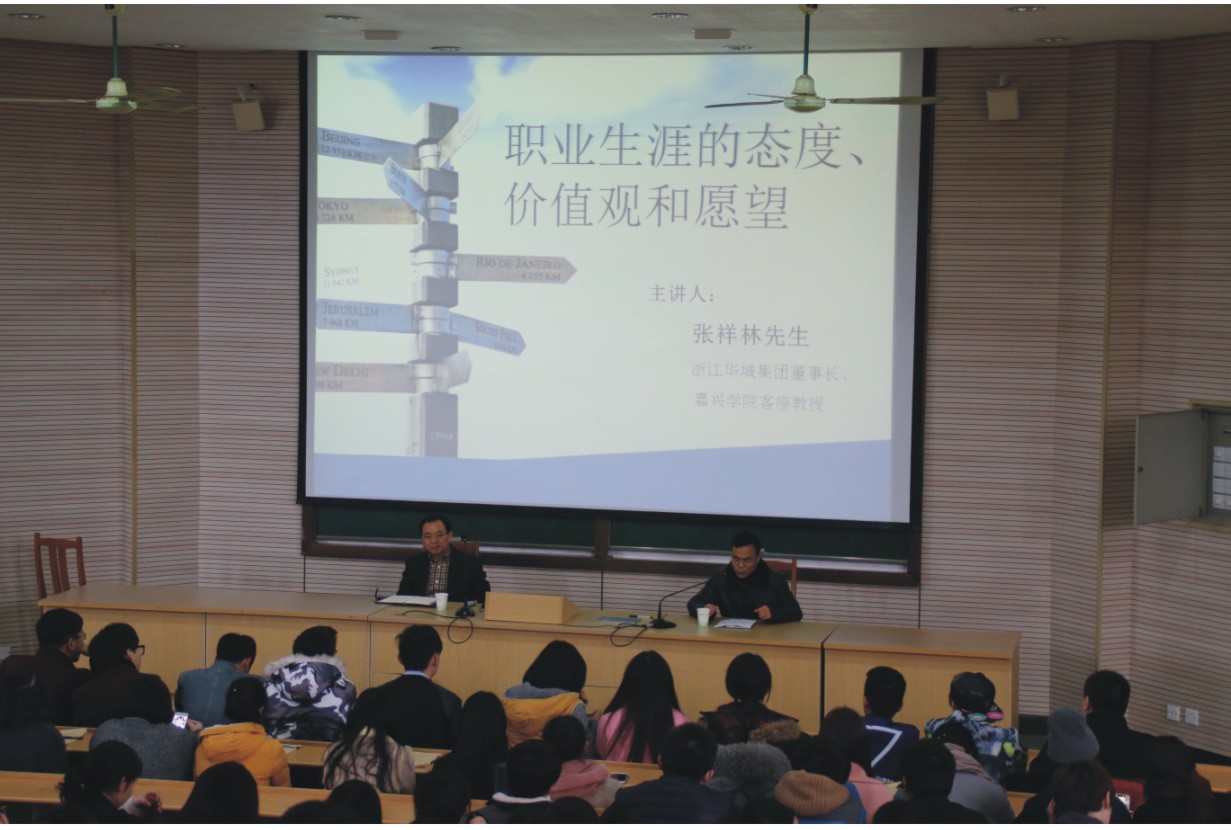 12月8日 下午,公司董事長(zhǎng)張祥林應(yīng)嘉興學(xué)院邀請(qǐng),走上了嘉興學(xué)院平湖校區(qū)2015藝術(shù)設(shè)計(jì)系高端講壇,為學(xué)子們開(kāi)展了一堂生動(dòng)的“職業(yè)生涯的態(tài)度、價(jià)值觀和愿望”主題講座。講座由校區(qū)管委會(huì)主任楊國(guó)勇教授主持,藝術(shù)設(shè)計(jì)系和其他專業(yè)的學(xué)生約三百多人到場(chǎng)聆聽(tīng)。