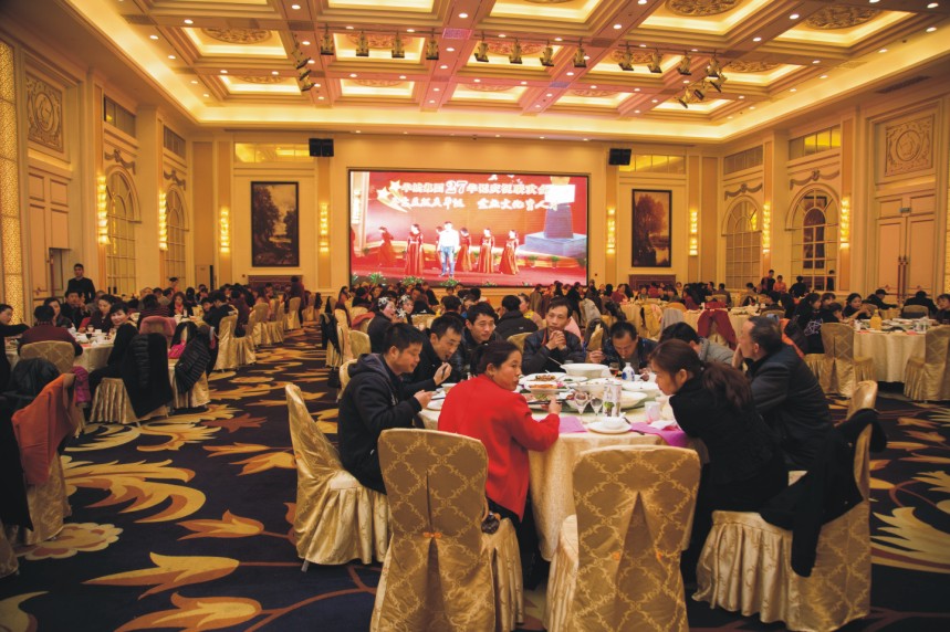 張董也作了精彩講話,再次強(qiáng)調(diào)企業(yè)文化建設(shè)的重要性,重申以人為本的管理理念。張董在講話中指出,我們?nèi)A城能夠穩(wěn)固是因?yàn)槲覀冇兄咚刭|(zhì)的員工隊(duì)伍,只要圍繞我們企業(yè)文化思想理念來領(lǐng)導(dǎo)我們企業(yè),來管理生產(chǎn)經(jīng)營,來愛護(hù)我們的員工,那么將來我們?nèi)A城還有無數(shù)個(gè)27年。張董的講話贏得了全場觀眾的掌聲,讓大家對今后的發(fā)展充滿信心。舉杯共慶祝,高歌頌華城。放飛喜悅的心情,快樂無限,演繹自己的節(jié)目,彰顯精彩。圣湖廳中,祝福與問候聲環(huán)繞會場,佳肴飄香,歌舞奔放,這是喜悅的盛會,前進(jìn)的鼓點(diǎn)在這里再一次敲響。