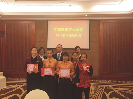 當(dāng)前位置:首頁 > 華城動態(tài) 5月18日上午,圣雷克大酒店2017年餐廳技能比賽在2號會議室圓滿落幕。此次大賽以“提升服務(wù)技能,展現(xiàn)酒店風(fēng)采”為宗旨,全面展示酒店員工愛崗敬業(yè)的精神風(fēng)貌、嫻熟精湛的服務(wù)技能。此前,所有的部門員工都經(jīng)過了嚴(yán)格的培訓(xùn),為技能大賽做好了充分的準(zhǔn)備。
