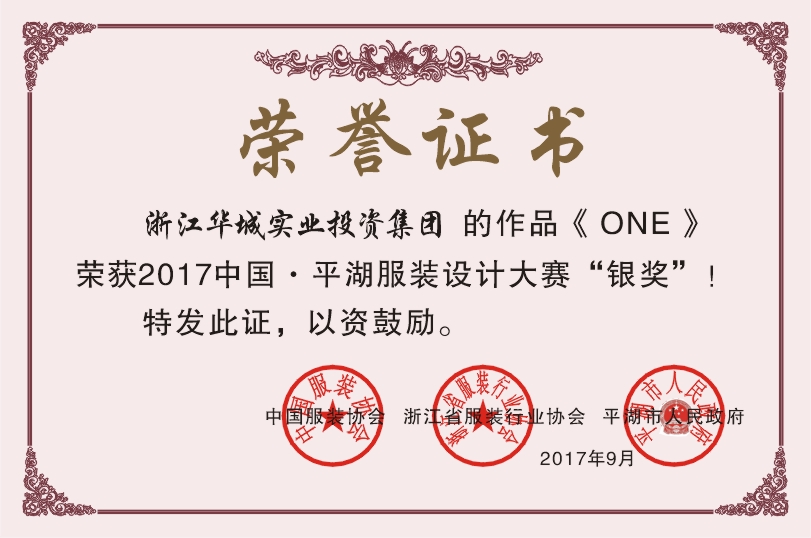 9月27日晚上,2017中國•平湖服裝設(shè)計(jì)大賽總決賽在市體育館隆重舉行。今年的服裝設(shè)計(jì)大賽與往年相比增加了很多亮點(diǎn),特別是它已經(jīng)由省級大賽升級為國內(nèi)專業(yè)性極強(qiáng)的國家級大賽。大賽由中國服裝協(xié)會、浙江省服裝行業(yè)協(xié)會、平湖市人民政府主辦,出席大賽的有中國服裝協(xié)會專職副會長楊金純,平湖市領(lǐng)導(dǎo)仲旭東、蔣娟芬、方向明、錢勇彪、俞明祥等。本次設(shè)計(jì)大賽以“聚合•共贏”為主題,共設(shè)金獎一名,銀獎兩名,銅獎三名。我公司選送的參賽作品“ONE” 從35組通過層層選拔的決賽作品中脫穎而出,獲得了此次大賽的銀獎。