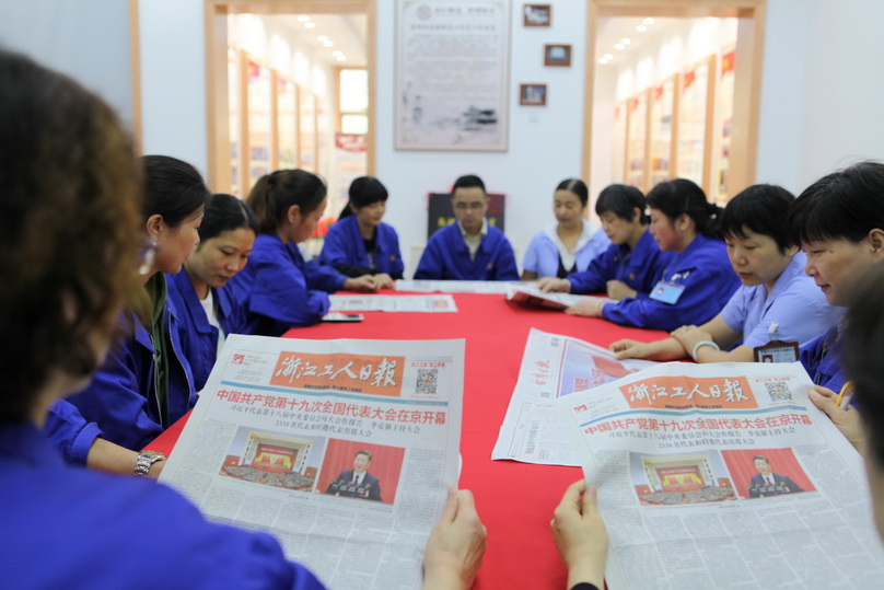 通過企業(yè)廣播,全廠每個員工都在學習十九大報告,領悟十九大精神。
