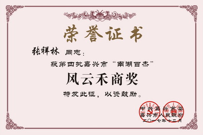 當(dāng)前位置:首頁(yè) > 華城動(dòng)態(tài) 日前,嘉興市委、 市政府發(fā)文公布了嘉興市第四批“南湖百杰”優(yōu)秀人才名單,我公司董事長(zhǎng)張祥林榮獲“南湖百杰”風(fēng)云禾商獎(jiǎng)。