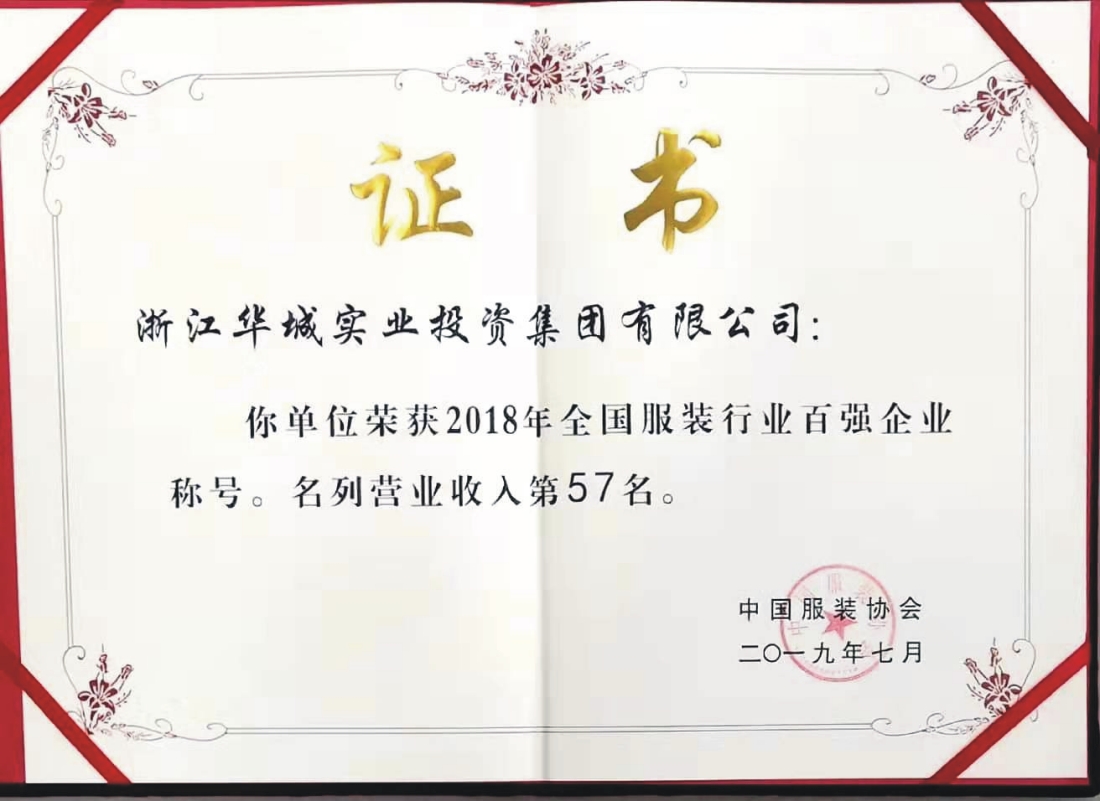 每年總有一個好消息,在這個季節(jié)等著與我們相遇,今年,又如期而至。日前,在中國服裝協(xié)會發(fā)布的2019中國服裝行業(yè)百強企業(yè)排行榜上,浙江華城實業(yè)投資集團有限公司再次榜上有名,這已經(jīng)是華城集團連續(xù)第十四年躋身全國服裝行業(yè)百強企業(yè)行列。
