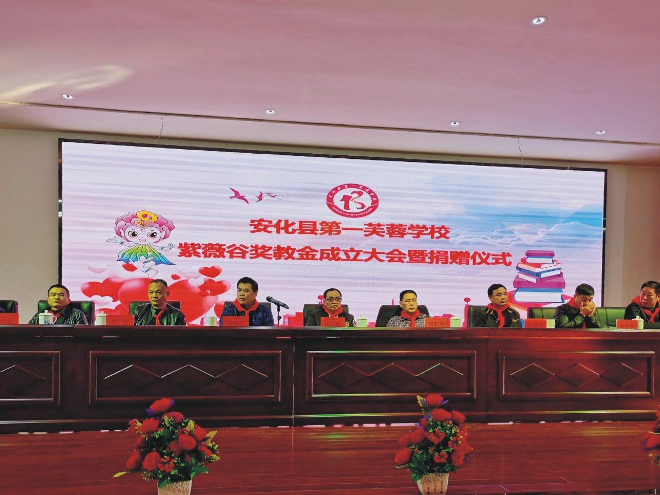 12月10日下午,“安化縣第一芙蓉學校紫薇谷獎教金成立大會暨捐贈儀式”在安化縣第一芙蓉學校舉行。安化縣副縣長胡能華、浙江華城實業(yè)投資集團有限公司董事長張祥林、多凌控股集團有限公司董事長張余林,安化縣教育局、縣城南區(qū)管委會、安化縣慈善總會等部門領導及全體師生和學生家長代表參加了捐贈儀式。