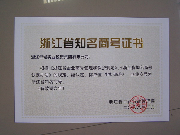 根據(jù)《浙江省企業(yè)商號管理和保護規(guī)定》、《浙江省知名商號認(rèn)定辦法》,經(jīng)浙江省知名商號評審委員會評審,我省有97件企業(yè)商號被認(rèn)定為浙江省知名商號,其中嘉興市有10件企業(yè)商號,我公司“華城(服飾)”商號榜上有名。 知名商號的被認(rèn)定是商號保護體系中的行政保護,對知名企業(yè)不被侵權(quán)具有現(xiàn)實意義。