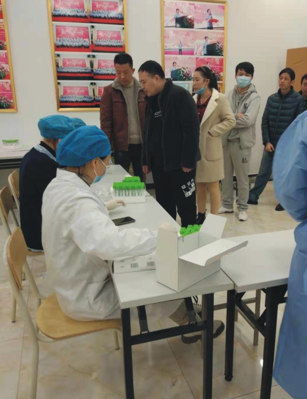 為了給這些員工提供方便,1月31日也就是星期天,公司請來了市人民醫(yī)院的醫(yī)生,為企業(yè)員工現(xiàn)場采樣,給返鄉(xiāng)員工送上核酸檢測證明。上午8點(diǎn),醫(yī)護(hù)人員就來到了檢測采樣現(xiàn)場。他們嚴(yán)格按照檢測采樣要求,保持通風(fēng)換氣,企管在現(xiàn)場維持排隊(duì)秩序。8點(diǎn)30分,按照步驟為返鄉(xiāng)員工進(jìn)行了咽拭子采樣。返鄉(xiāng)的員工排著隊(duì),現(xiàn)場井然有序,他們完成登記后,逐個(gè)配合完成了采樣工作。按照“應(yīng)檢盡檢”的原則,所有預(yù)返鄉(xiāng)員工都進(jìn)行了咽拭子核酸檢測采樣。幾天之后,員工就能拿到檢測報(bào)告,安安心心地回家過年。