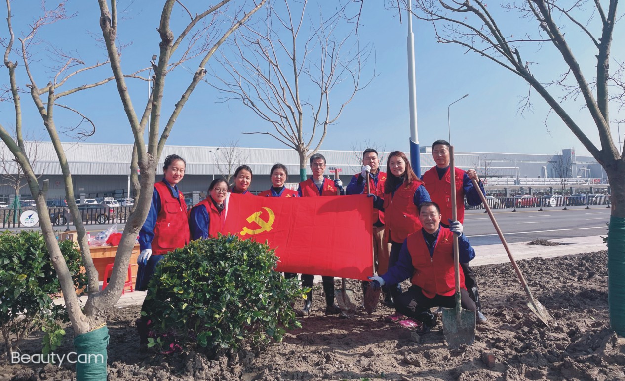 當(dāng)日早上8:30在陳書(shū)記的帶領(lǐng)下,一支由四男六女共十人組成的志愿隊(duì)從公司出發(fā),大概十分鐘左右的車程,到達(dá)了此次植樹(shù)活動(dòng)的目的地,即長(zhǎng)城汽車公司路段。考慮到泥地濕滑,書(shū)記已貼心地為每個(gè)人提前準(zhǔn)備好了雨鞋,換上雨鞋、穿上紅馬夾、戴上紗手套、抓起鐵鍬,為接下來(lái)的勞動(dòng)做好了預(yù)熱準(zhǔn)備。我們的隊(duì)伍徑直走到了自己的包干區(qū),看著周圍一群群同樣穿著紅馬夾的其他公司的志愿者們,一腔勞動(dòng)的熱血馬上涌上心頭,二話不說(shuō),拿鐵鍬的伙伴們?cè)缫衙闇?zhǔn)了那個(gè)事先定位好的樹(shù)坑,圍著坑一鏟一鏟地開(kāi)始挖土。我們先選了小的灌木下手,所以十人的隊(duì)伍自覺(jué)地分成了兩個(gè)小分隊(duì),有的挖土,有的抬樹(shù),還有的在一旁用相機(jī)記錄下這激情時(shí)刻,可謂一派熱火朝天的景象。種好了灌木,我們十人組合開(kāi)始齊心協(xié)力應(yīng)對(duì)那幾棵大樹(shù),相比灌木而言,需要把坑挖得更大些,抬樹(shù)也需要更多的力氣,因?yàn)橄闩輼?shù)身上長(zhǎng)刺,無(wú)法接觸樹(shù)的上部,只能靠接觸樹(shù)干下部有布包住的位置用力。此時(shí)男同胞們充分發(fā)揮了他們的男性力量,兩三人同時(shí)用力,再加上一兩人拉起樹(shù)根的捆繩,終于穩(wěn)穩(wěn)地將樹(shù)放置到挖好的坑中。將樹(shù)放正后女同胞們扶住樹(shù)干,男同胞們拿起鐵鍬鏟土填坑,扶樹(shù)的女同胞們手沒(méi)空,腳也沒(méi)有閑著,抽出一只腳,用力地踩著填上來(lái)的泥土,讓每一鏟土都準(zhǔn)確地到它該去的地方,發(fā)揮其應(yīng)有的作用。一會(huì)兒功夫,一棵大樹(shù)就亭亭玉立地出現(xiàn)在了眾人的面前。