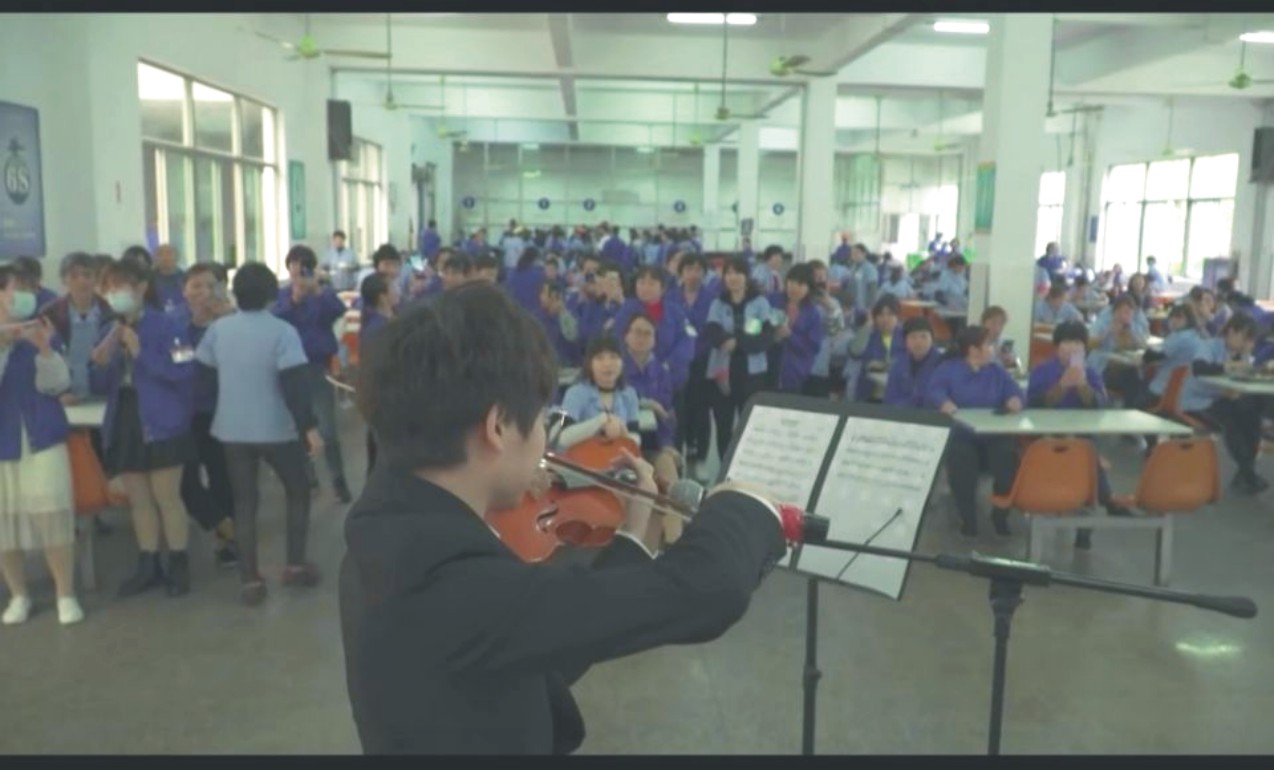 食堂里,正在吃飯休息的員工,邊吃邊欣賞到了一臺文藝節(jié)目。有悠揚的小提琴、優(yōu)美的舞蹈,還有走到員工中間的合唱表演,F(xiàn)場的氣氛輕松活潑,員工們都有非常驚喜的感覺,笑容燦爛。正在吃飯的華城制衣員工陳小妮,也拿過話筒,為大家即興唱了一首歌,讓互動更為熱烈。食堂外面文化長廊中,還有反詐宣傳、量血壓、洗眼鏡等便民服務(wù)。