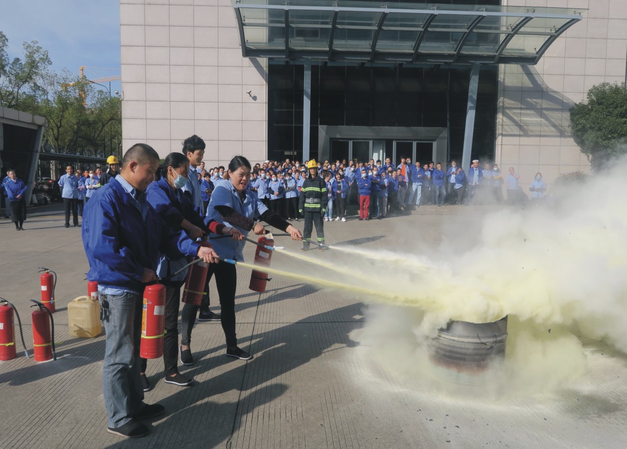 演習第一步驟,緊急疏散。隨著警鈴響起,員工們立即停下手中的工作,馬上起身,通過消防通道緊急有序疏散。第二步驟,消防知識講解。員工們通過各條安全通道來到指定空曠地帶后,現(xiàn)場由集團總部人力資源部部長吳剛毅為大家講解消防演練的意義以及詳細的消防知識,主要從滅火方法及注意事項、火險隱患、應急自救常識等方面進行了詳細講解,有較高的實用性和可操作性,豐富了員工的消防知識。第三步驟,現(xiàn)場示范。通過吳部長對消防器材的使用說明,并且一個個動作拆分講解,示范運用,讓員工們詳細了解消防器材是如何在關(guān)鍵時候發(fā)揮作用的。第四步驟,模擬災情,員工實練。將演練道具油桶點燃后,員工們輪流上場,趁熱打鐵,將所學理論知識付諸實踐,最終熟練掌握了滅火器的使用方法。