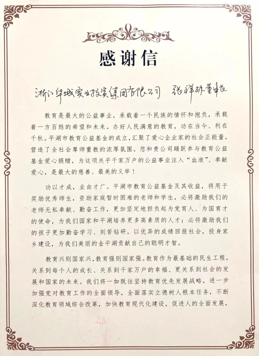 此次捐贈(zèng),體現(xiàn)出華城的遠(yuǎn)識(shí)和大愛(ài)。華城的發(fā)展離不開(kāi)當(dāng)?shù)卣腿罕姷闹С,積極為教育事業(yè)出資出力,既是回報(bào)政府和社會(huì)各界對(duì)企業(yè)的重視和支持,也是履行企業(yè)應(yīng)盡的社會(huì)責(zé)任。
