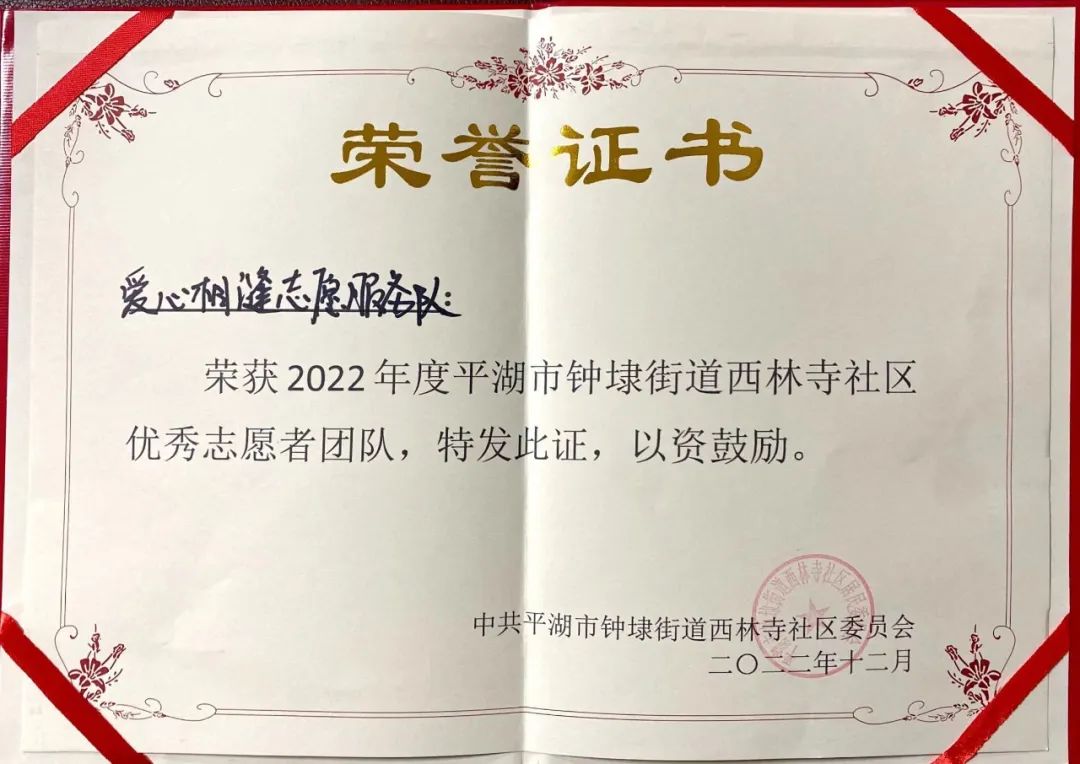 當(dāng)前位置:首頁 > 華城動(dòng)態(tài)12月5日上午,在西林寺社區(qū)開展的“弘揚(yáng)全民志愿風(fēng)采,共建共富志愿之城”國際志愿者日慶祝會(huì)上,華城集團(tuán)愛心相縫志愿隊(duì)獲得社區(qū)頒發(fā)的優(yōu)秀志愿者團(tuán)隊(duì)榮譽(yù)。