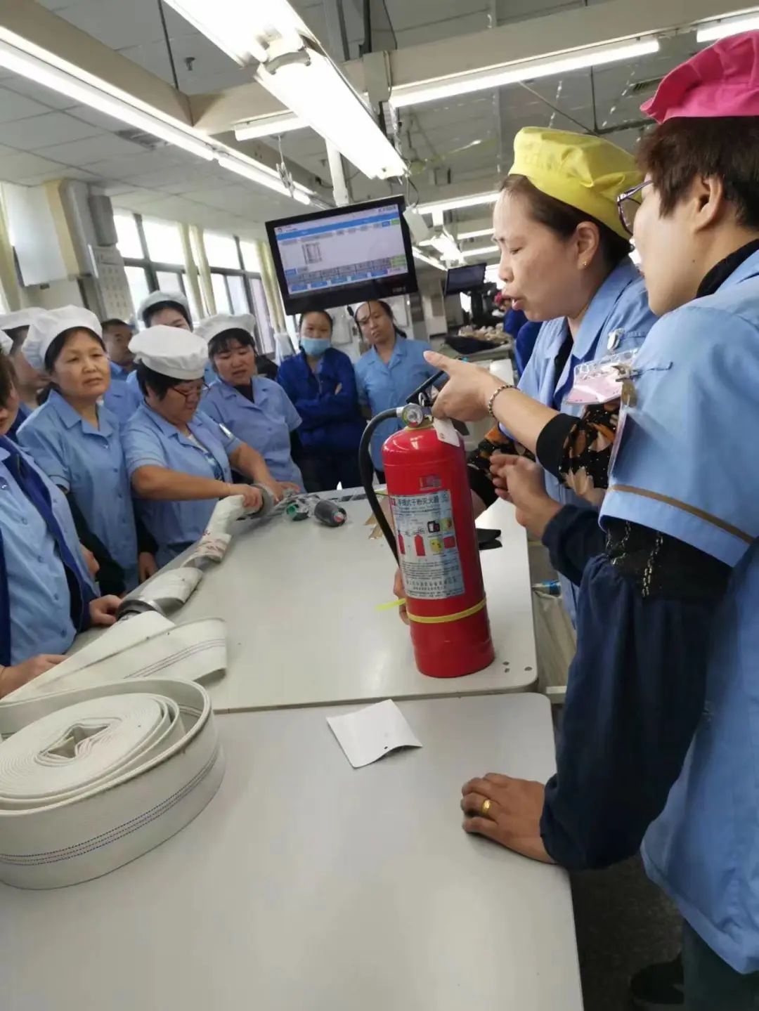 在車間里,利用開晨會(huì)的時(shí)間,每個(gè)小組由組長(zhǎng)培訓(xùn),如何正確使用水槍及滅火器,并且讓員工參與到培訓(xùn)中。通過手把手的培訓(xùn),以及實(shí)操,讓每個(gè)員工對(duì)水槍及滅火器的使用熟練掌握。