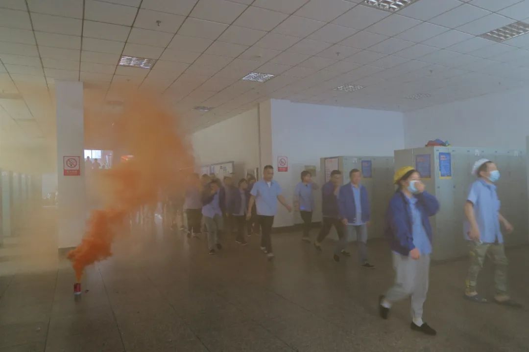 演習開始后,微型消防站成員在現(xiàn)場放起煙霧彈,模擬火災現(xiàn)場。行政部童部長按照預定的計劃,發(fā)出緊急疏散指令,全員迅速按照演習方案進行疏散,有序地從通道向安全出口模擬逃生。在演習過程中,彭部長對員工的表現(xiàn)進行了評估,并及時提出了改進意見。