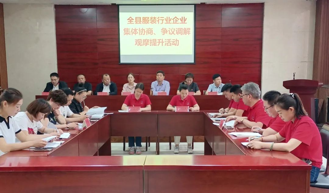 當(dāng)前位置:首頁 > 華城動態(tài)5月30日,縣服裝行業(yè)企業(yè)勞動關(guān)系集體協(xié)商、爭議調(diào)解觀摩提升活動在濟(jì)寧華城百靈服飾有限公司成功舉辦;顒佑煽h人社局、服裝商會和濟(jì)寧華城百靈服飾有限公司聯(lián)合舉辦,縣總工會、法院、司法局、南站街道有關(guān)負(fù)責(zé)同志、16家服裝企業(yè)代表、服裝商會協(xié)調(diào)勞動關(guān)系工作站成員、濟(jì)寧華城百靈服飾有限公司職工參加活動。