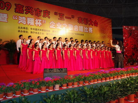 為進(jìn)一步深入開展嘉興市企業(yè)職工文化建設(shè)示范工程活動,扎實(shí)推進(jìn)全市企業(yè)職工文化建設(shè),助推全市經(jīng)濟(jì)轉(zhuǎn)型升級創(chuàng)新發(fā)展,經(jīng)嘉興市委宣傳部、市總工會、市文廣局研究決定,嘉興市企業(yè)歌曲征集評選活動和“鴻翔杯”企業(yè)之歌合唱比賽于2009年4月28日在海寧市體育中心舉行。我公司《華城之歌》合唱團(tuán)通過各隊(duì)員的共同努力,克服在排練過程中的種種困難,在比賽現(xiàn)場發(fā)揮出優(yōu)異的成績,所唱的《華城之歌》和《解放區(qū)的天》二首歌曲受到了現(xiàn)場觀眾的陣陣掌聲和評委的肯定,在此次比賽中獲得第一名。企業(yè)歌曲是體現(xiàn)企業(yè)文化和職工文化的重要載體,通過廣泛傳唱企業(yè)歌曲,展示企業(yè)形象,凝聚職工力量。這次《華城之歌》第一次在嘉興市級比賽中開唱就受到大家的好評,也是反映了我們?nèi)A城人的精神面貌,同時也展現(xiàn)了我們?nèi)A城集團(tuán)的企業(yè)形象。