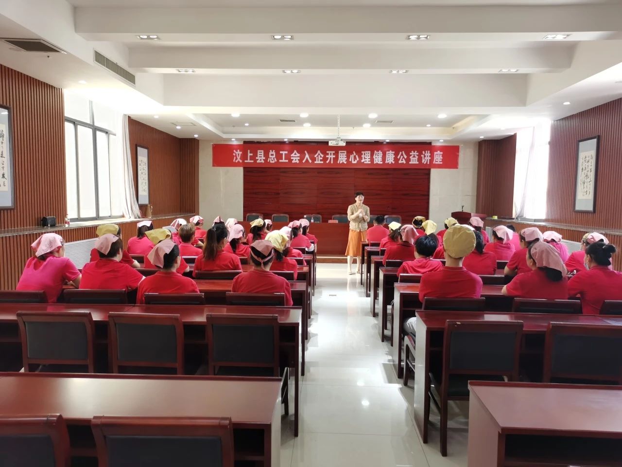 當(dāng)前位置:首頁(yè) > 華城動(dòng)態(tài)為進(jìn)一步普及心理健康知識(shí),引導(dǎo)職工樹(shù)立積極健康心態(tài),促進(jìn)職工身心健康,9月1日,汶上縣總工會(huì)前往濟(jì)寧華城百靈服飾有限公司開(kāi)展職工心理健康講座。本次講座邀請(qǐng)縣心理學(xué)會(huì)發(fā)起人、國(guó)家二級(jí)心理咨詢師吳德靜老師前來(lái)授課,公司60余名一線管理者參加了此次講座。