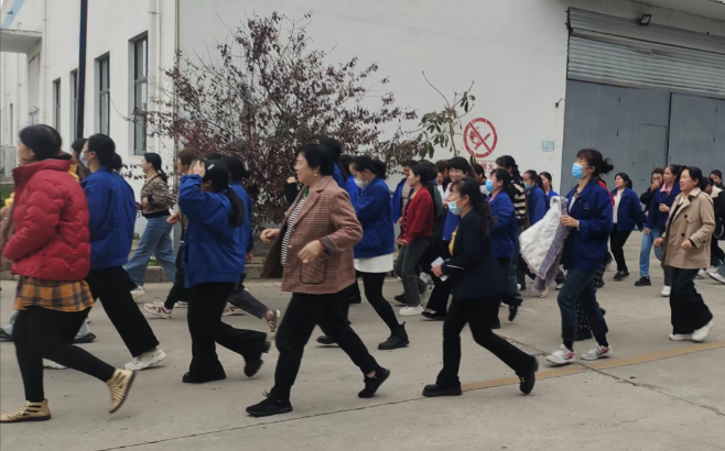 隨著一陣急促的警報(bào)聲響起,疏散演練正式開(kāi)始。全體員工按照演練預(yù)案開(kāi)展了火場(chǎng)逃生演習(xí)。同事們紛紛掩住口鼻,壓低姿勢(shì)彎著腰,安全、快速、有序地逃出生產(chǎn)車間,到達(dá)指定的安全地點(diǎn)。
