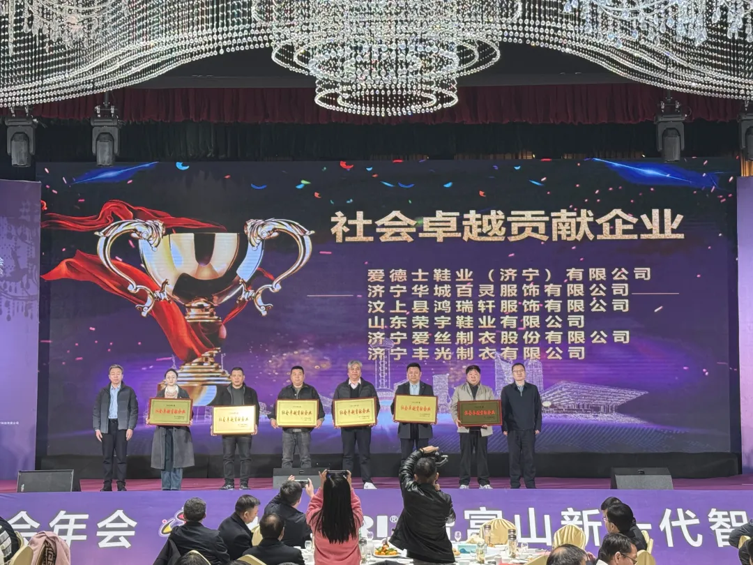 在年會(huì)中,為弘揚(yáng)先進(jìn)、樹立典型,激勵(lì)廣大會(huì)員企業(yè)積極進(jìn)取、爭(zhēng)創(chuàng)佳績(jī),服裝商會(huì)對(duì)一批表現(xiàn)卓越的先進(jìn)會(huì)員企業(yè)進(jìn)行了表彰,濟(jì)寧華城百靈服飾有限公司等6家企業(yè)脫穎而出,榮獲2024年度“社會(huì)卓越貢獻(xiàn)企業(yè)”獎(jiǎng)牌。