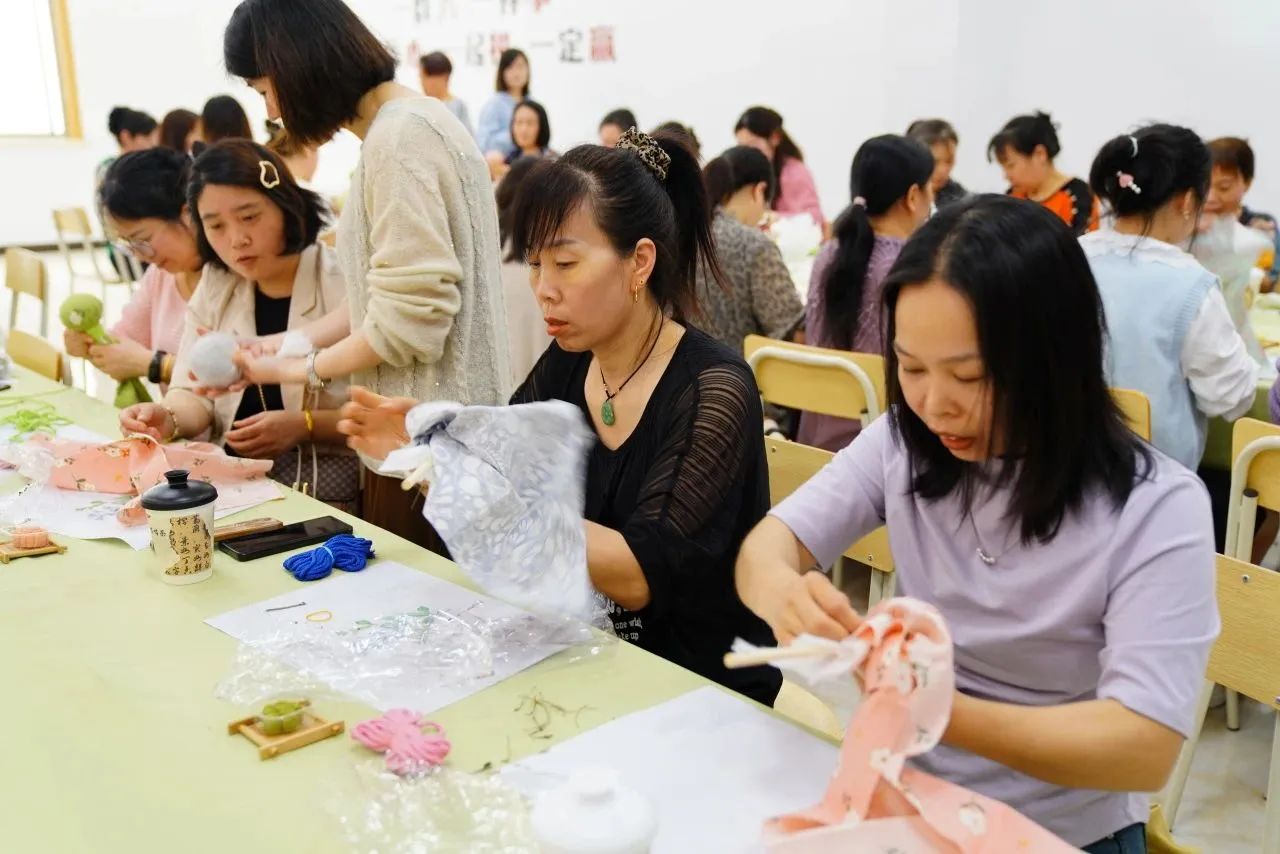艾草錘作為中醫(yī)養(yǎng)生的實(shí)用工具,對(duì)久坐久站的員工們益處頗多。大家從填充艾草等五味中藥材到內(nèi)襯收緊、外花方巾的捆繩,一步步親手制作養(yǎng)生錘。在這過(guò)程中,大家熱情高漲,互幫互助,沉浸在動(dòng)手的樂(lè)趣中。